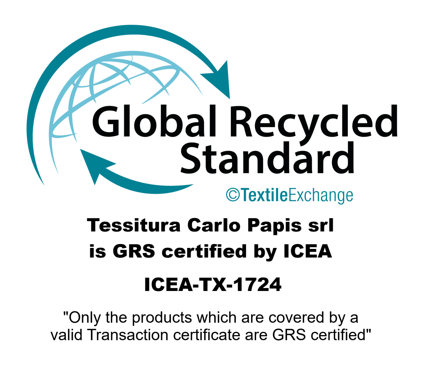 Un prodotto certificato secondo il Global Recycled Standard (GRS), promosso da Textile Exchange, contiene materiali riciclati verificati in modo indipendente in ogni fase della filiera, dalla fonte al prodotto finale. La certificazione garantisce anche il rispetto di rigorosi criteri ambientali e sociali, nonché l’uso responsabile di sostanze chimiche durante la lavorazione.